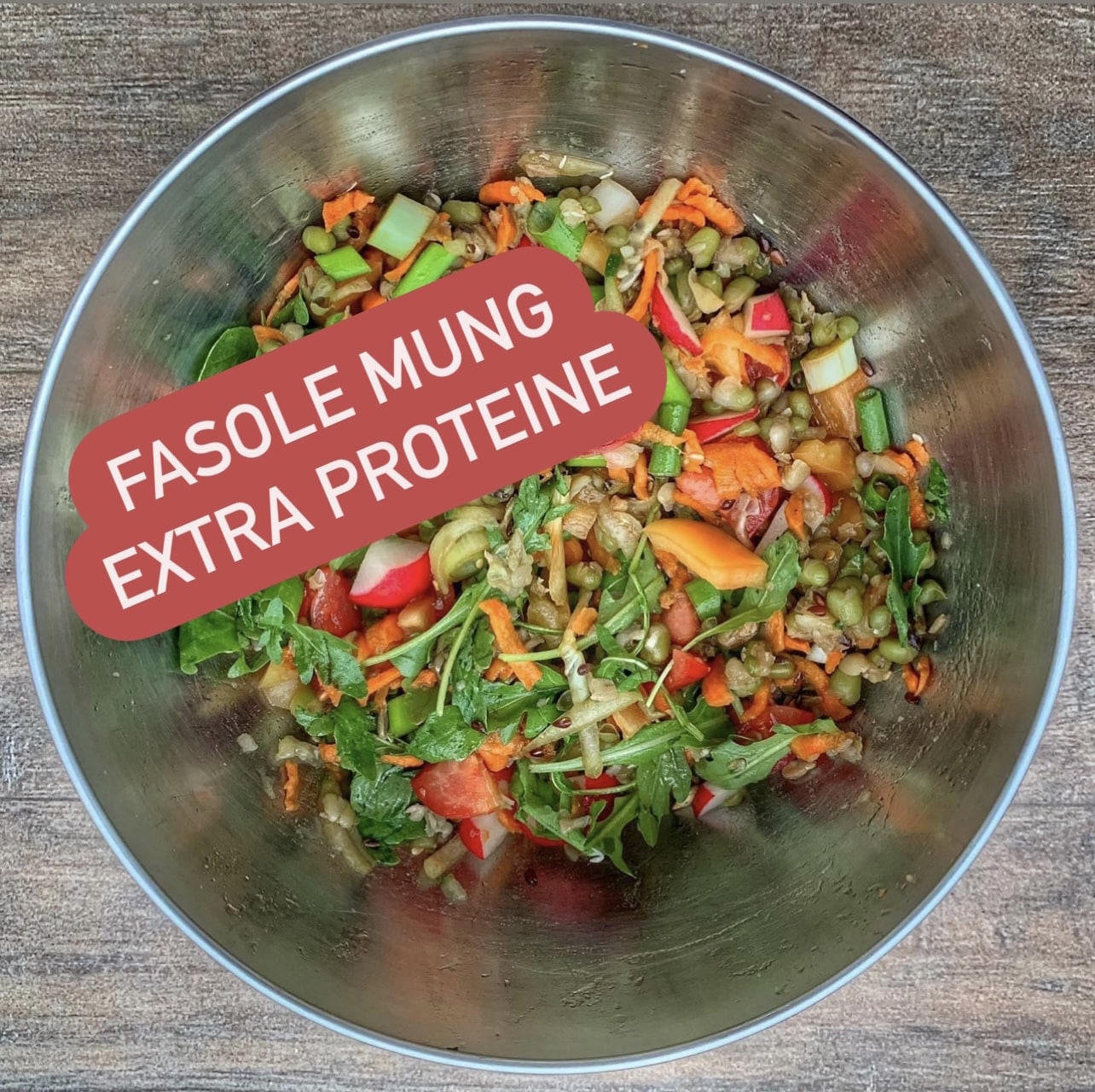 Pentru salata din imagine am fiert si adaugat la final 100 de grame de fasole mung peste 300 de grame de legume proaspete: